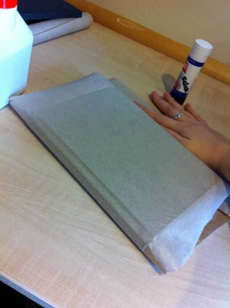 Mentira la tapa adherida abajo de plano para que la cubierta y el lomo restante son visibles. Cubrir estas en cola como antes, no se olvide de las esquinas! Luego rodar el libro, en el papel, la superficie plana ayudará a difundir el papel bonito y uniforme. Como antes, utilizar mano firme para suavizar las arrugas y asegurar los bordes. También puede extraer suavemente en los bordes del papel que le enseñó sobre la cubierta del libro.