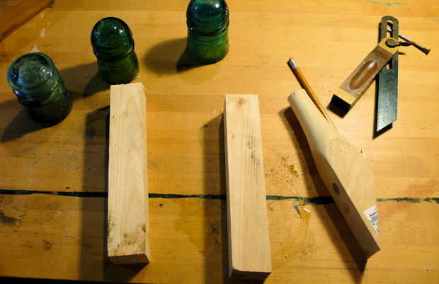 Esto es porcentaje todos: residuos de madera de otros proyectos, aisladores de sistema de comunicaciones antiguo de cristal.