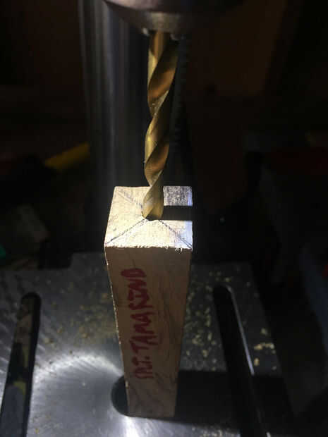 Una vez haya seleccionado su madera, utilice un borde recto para marcar el centro. Esto es donde usted taladrará el agujero para garantizar su cucharada. El kit que estoy usando llamadas para un 1/4" bits y un agujero de 13/16". He decidido establecer mi parada en 1" por lo que podría utilizar un montón de epoxy más tarde.