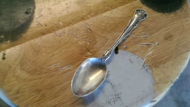 el mercado de pulgas local. Raleigh, Carolina del norte. Un lugar de maravilla. Intuición. Pero sobre todo, un lugar para encontrar viejas mierda! Un chico estaba vendiendo algunas cucharas, así que elegí uno para arriba, ya teniendo en mente cómo sería hacerlo en un anillo. Sólo tengo uno, que es arriesgado pero salió gran. Todo lo que necesita es una cuchara, forma, mazo, hack vio, un archivo, y agarra un par de tornillo de banco.