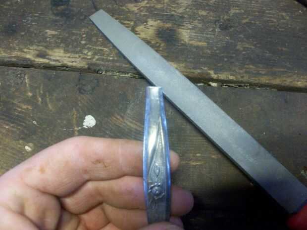 éstos, entonces encontrar un socket que es un firme ajuste alrededor de la parte interior del anillo, una vez que encuentre el enchufe de tamaño correcto, mida la circunferencia de la misma con una cinta métrica (el tipo de tela funciona mejor) y corte el mango para que la longitud con las tijeras de alambre cortadores/de la lata. Utilice una lima para redondear los bordes.