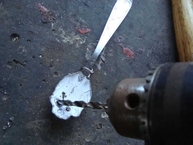 Y para finalizar, con el banco de un taladro distribuidores de "taladro" (aunque yo uso uno de mano) agujereamos la parte de los ojos y nariz de la calavera intentando atentamente el dibujo de la plantilla.