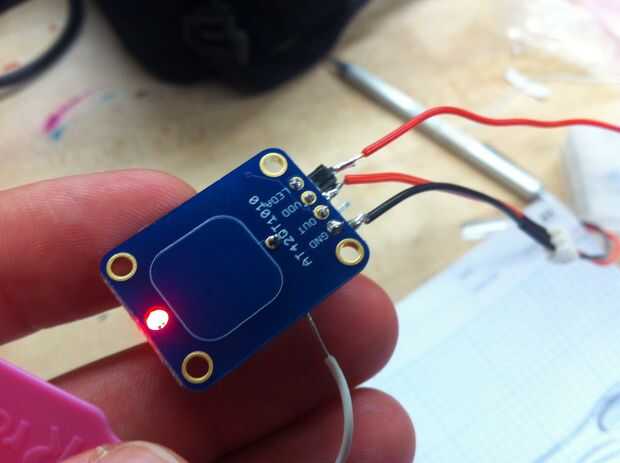 Duda acerca de las dimensiones de la concha de la cuchara, la Asamblea de las partes internas tales como la batería, cables, LEDs y sensor capacitivo se necesitan. Por lo tanto, este paso va antes del proceso de CAD. Para la deliciosa cuchara utilizaremos interruptor momentáneo táctil capacitiva independiente por Adafruit, una 3.7V batería recargable de ion de litio y una cinta de cobre para aumentar la sensibilidad para que el interruptor del sensor puede detectar los campos magnéticos de los alimentos y los labios para iluminar el LED adentro.