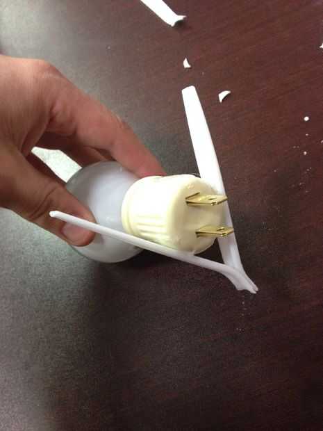 Con dos manijas, caliente pegamento dos manijas a la toma en forma de V como se muestra.