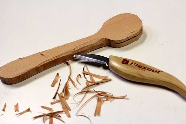 Ahora al principio es útil sólo tener una idea de cómo quita material de la cuchara y el cuchillo en blanco. Talla a lo largo del eje o el mango de la cuchara es el lugar más fácil a la práctica. Comience dando pequeños trazos, eliminación de pequeñas cantidades de material y talla lejos de usted. Mientras que hay situaciones en donde con seguridad se puede tallar hacia usted, al principio es más fácil de tallar a distancia.