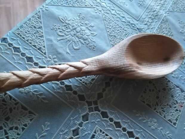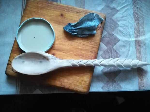 Y después de lo único que me quedaba para hacer, era aceite de la madera, así que tomó unas gotas de aceite y un trozo de tela y había engrasado la cuchara...
