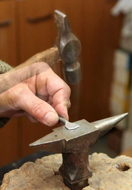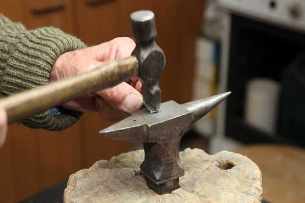 Ahora empezar a ampliar la parte del tazón de fuente de la barra, martillando con la Peña en línea con el eje de la varilla.
