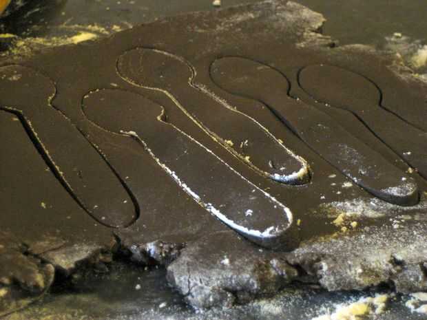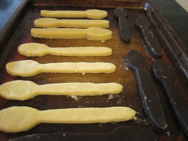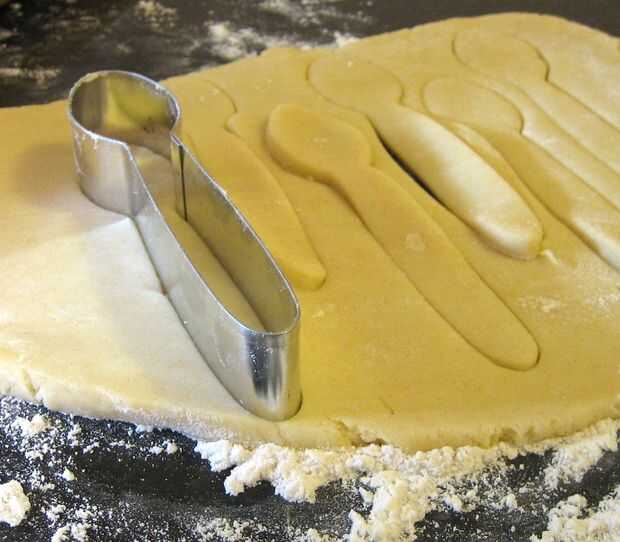 2. Usando el cortador de cuchara, cortar formas de cuchara de la masa (trozos de masa pueden se reunieron y volver a rodado una vez - más nuevo no rollos sugerido)