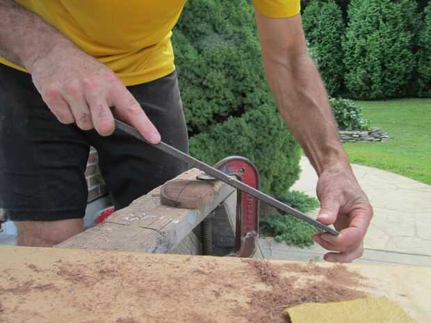 herramientasLápizTijerasSierra de cintaEscofinaVicio o abrazaderasArchivo1/2"-3/4 talla gubiaMaterialesPapel10 "x 3" x 1 "¾ o más grande pieza de maderaCinta de enmascararPapel de lija 100,120,150 granosAceite mineralSeguridad• No use