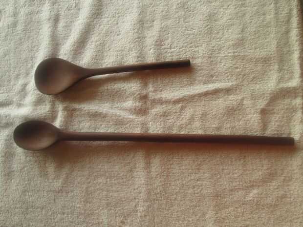 Mi padre disfruta de cosas naturales y le gusta un par de cucharas de madera que he hecho por él en el pasado así que decidí hacer una cuchara especial para él. Él me dio una cuchara que le gustaba usar y decidí hacer un duplicado de la misma madera.