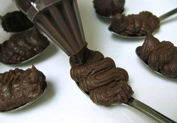 Coloque la mezcla de ganache/trufa en una manga pastelera y tubo en cucharas. Si encuentra el ganache no es lo suficientemente gruesa, en la nevera durante unos minutos. Si es demasiado gruesa, amasar con las manos calientes durante unos minutos, y relajará.