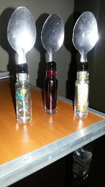 Desde los principales componentes utilizo (piezas de cuchara de metal y acabado attar botellas) fueron adquiridos gracias a serendipity y ubicación geográfica respectivamente, me imagino este Instructable sería inútil para la mayoría de ustedes. Sin embargo, si han adaptado la idea a su contexto y venir para arriba con algo fresco, encantaría saber cómo, así que por favor compartir en los comentarios!