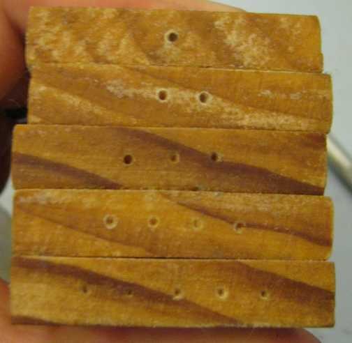 En este paso, marcar los segmentos madera 1 a 5 con tornillos de latón. Crear dos plantillas para ayudarle.