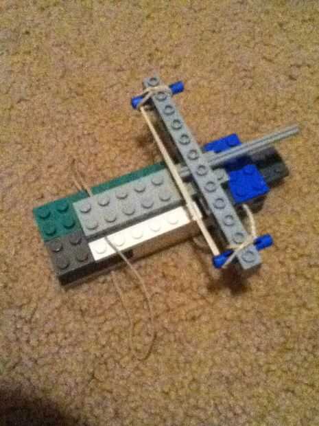 Esto es para la pistola que Ezio consigue en número 2. Se necesita un 8 x 2 y un ladrillo de 10 x 1 con agujeros y dos de las cosas azules. Poner las cosas azules en los extremos de la x 10. poner una goma entre las dos cosas azules. Poner la proa en el 8 x 2. Poner en la munición de hoja y de la carga oculta, tire hacia atrás y deje que y deben disparar.
