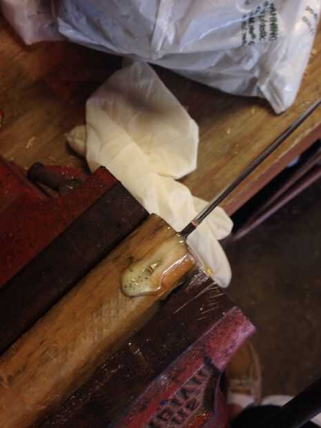 Agregue algun pegamento del gorila y el cuchillo en una especie de abrazadera para dejar el pegamento flujo en todo el espacio abierto! ¡ Es importante!