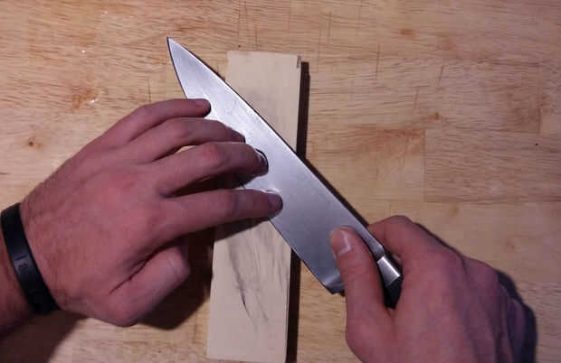 hay muchas maneras de afilar un cuchillo. Este método produce un borde de buen propósito general.Nota de seguridad: como mi abuelo solía decir: "no corte hacia usted, y usted nunca a conseguir corte.Excelentes fotos de Christy Canida el carnicero de