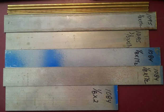 En su ferretería local, usted encontrará stock acero plano en varios espesores, anchos y largos. Pensé que era impresionante, un pie 8 x 2 pulgadas x 1/8 espesor pieza de acero era sólo $14. Pude cortar varios espacios en blanco de ella y ser completamente contento con el dinero gastado, pero la calidad del acero es demasiado pobre para mantener un borde.