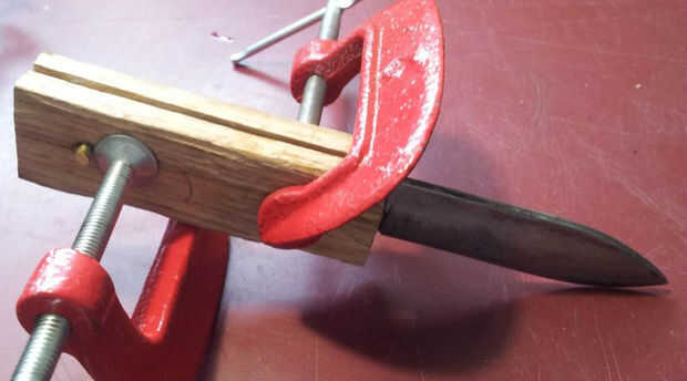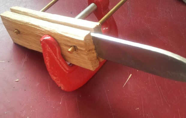 Pegar manijas y pernos con resina de 5 minutos y la abrazadera hasta que el pegamento se establece. Para las manijas, sólo usé tablas de madera que corte de leña.