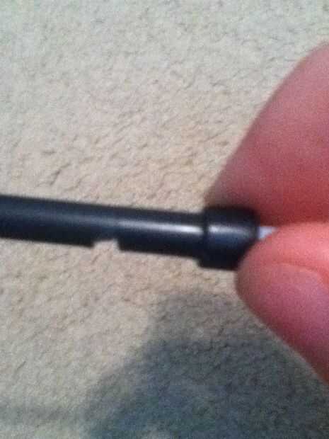 This is simple. Corte el tubo interno del lápiz mecánico como se muestra. Luego inserte la pieza posterior del cartucho en la parte superior de la pieza del lápiz. Entonces empuje el cuchillo en el cuerpo y mantenga presionado y anotar donde apertura comienza y termina. Luego cortar un trozo de plástico entre las puntuaciones para obtener un agujero para el gatillo.