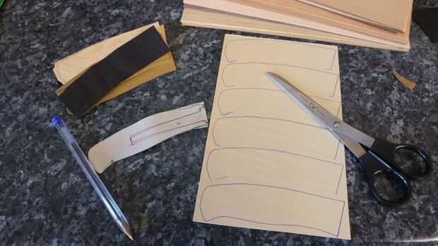 El primer paso es trazar el patrón en las hojas de madera. Usando un par de tijeras, recortar sus espacios en blanco, no tiene que ser perfecto, nos va ser formando lo todo hasta más tarde.