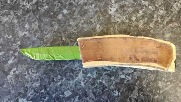 En este punto nos estamos pasando del pegamento del gorila epoxi parte dos. Hay una razón simple para esto, gorrilla pegamento tiene una tendencia a hacer espuma en espacios. Espuma flexible, no es lo más deseable rasgo para fijar una hoja de cuchillo. Epoxy de parte dos conjuntos de rock duro y es realizable como termoplástico para producir un buen acabado.