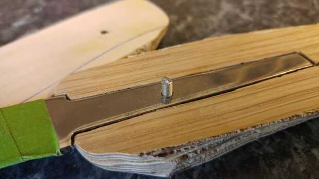Usé un viejo tornillo de máquina con la cabeza cortada para esto. Era un ajuste perfecto para el agujero en el tang.