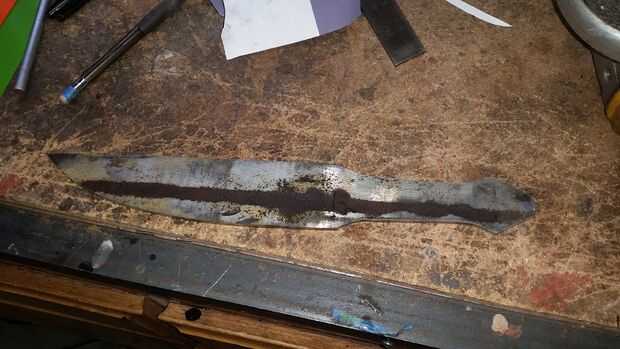 Después de un par de horas de continua de perforación/hack cortar ángulo lijado pulido/correa tenía el patrón de la cuchilla.