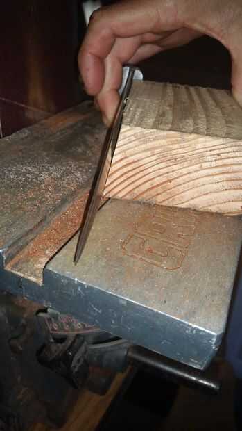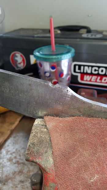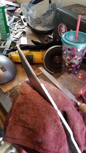También presentó una ronda de 1/2 donde la hoja reunirá el mango protector de la Cruz. -Por qué bueno porque el borde de mi lijadora de banda no una perfecta 90 grados entre el borde de las correas y el lado de la lijadora de banda. Esto me impide tener un final limpio vertical donde acaba el perfil del filo. La ronda de 1/2 me permite obtener una molienda más limpia y más vertical. (Esto no es la mejor explicación, espero que ayude la imagen)