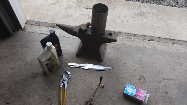 Así que el aceite debe ser calentado antes de hundir la cuchilla de corte en ella. Calienta una viejo cabeza de martillo tenía que brilla intensamente rojo y ponlo en el recipiente con aceite. Hizo el truco!