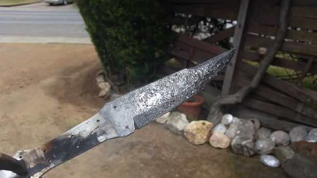 Así que de alguna manera la primera vez que hice esto, la hoja curvada, así que tuve que volver a hacerlo. Calentado para arriba otra vez, de alguna manera doblada la hoja espalda recta e hizo la apaga otra vez.