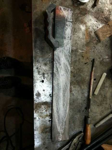 se trata de cómo hice mi encargo cuchillo de BowiePaso 1: diseño Lo primero que hay que hacer cuando lo que un cuchillo es siempre llegar a un bosquejo áspero de lo que quieres que se vea comoPaso 2: El espacio en blanco Cortar el espacio en blanco p