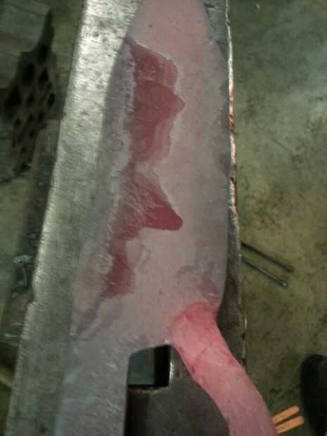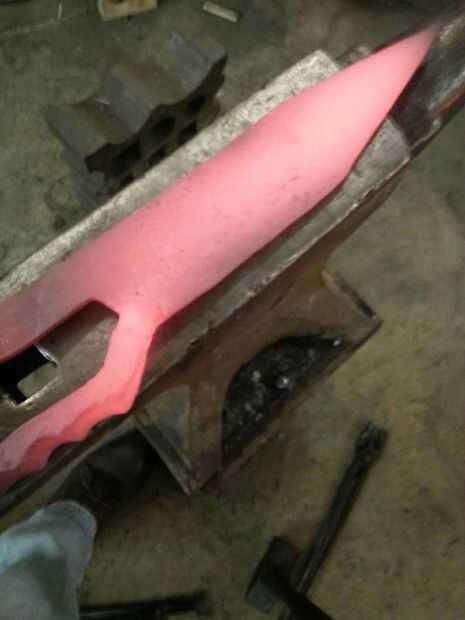 Esencialmente todos hace uno es Deslice la hoja del borde sobre el borde de la superficie superior del yunque y ángulo ligeramente. Martillo golpes desde el otro lado, coincide con el ángulo, haciendo el mismo efecto en ambos lados.