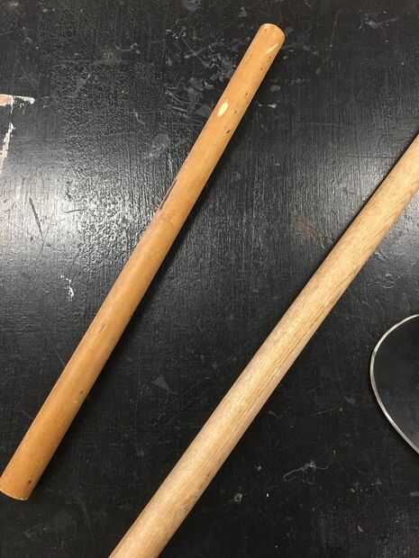 Tenía una escoba con el bigotes todo doblado y roto. Reciclé la empuñadura de eso de la escoba de la manija de la Mi Ho.