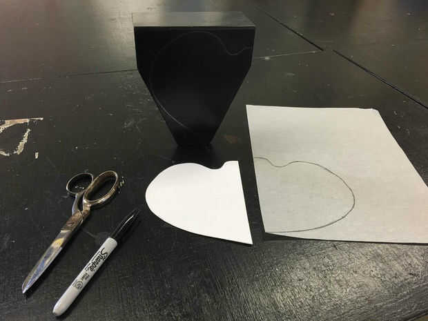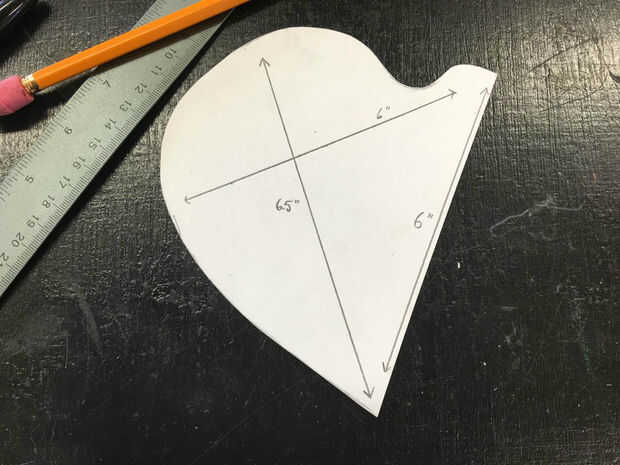 La Mi Ho tiene una forma como un corazón con una parte cortada. Las dimensiones aquí no tienen que ser exacta, pero es importante trabajar dentro de los parámetros de sus materiales. En primer lugar, esbozar un diseño en papel. A continuación, trace la plantilla de papel sobre la chatarra. La misma plantilla puede utilizarse para girar a la izquierda manos o diestro Ho Mi poniendo simplemente el papel.