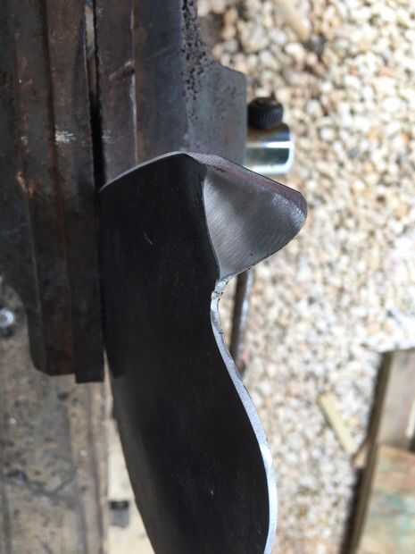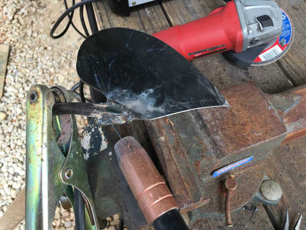 La pintura negra sobre el arado tuvo que ser quitado para que la soldadura tuvieran buenos puntos de contacto.