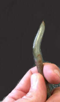 El tang podría hacerse de casi cualquier hilo menos varilla. Tuve un perno doblado colocación alrededor de modo que reutilizar. El ángulo de la cabeza de Mi Ho es importante.