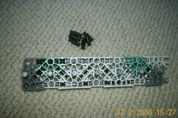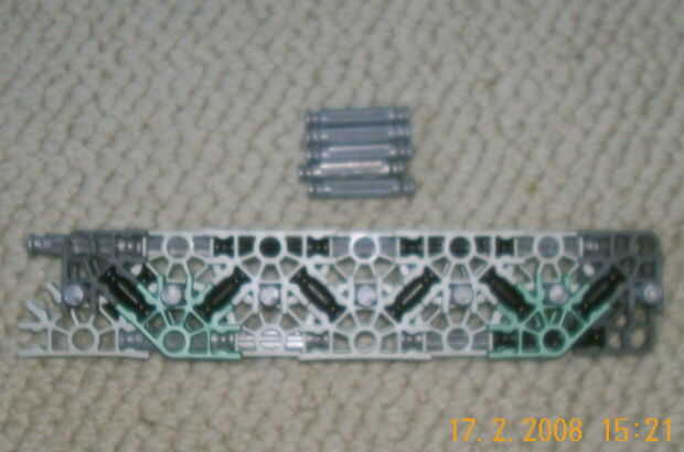 este cuchillo KVG es muy fácil de hacer y es bastante fuerte. Necesita: 10 conectores azules, 1 conector blanco oscuro, 1 conector verde, 3 conectores amarillo, 2 conectores naranja, 2 barras amarillas, 2 barras blancas, 3 barras verdes, 1 barra roja