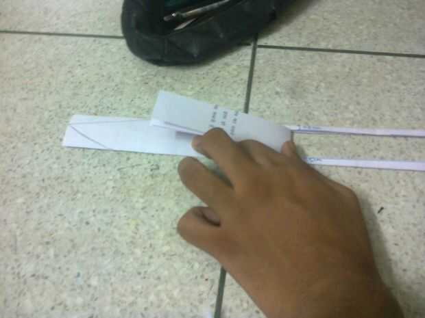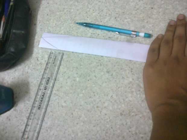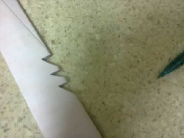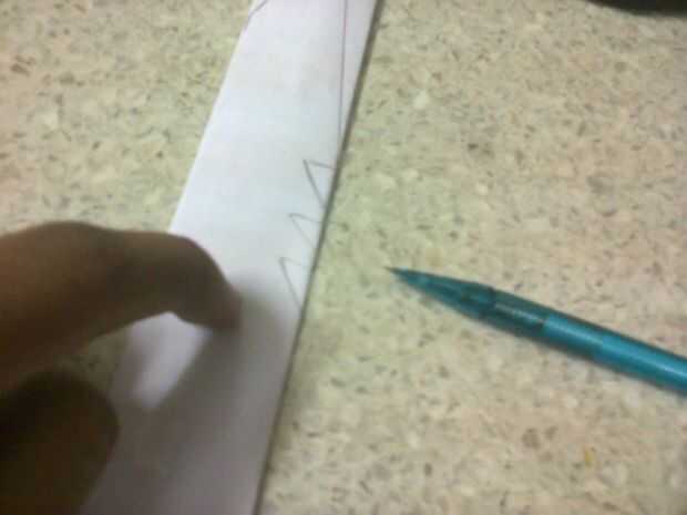 trazar una línea recta hasta el otro extremo (no la punta dibujado) y cortar con las tijeras.