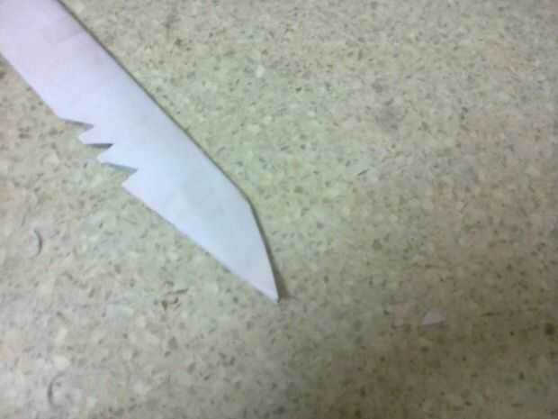 dibujar el diseño de un cuchillo de caza en el borde de la hoja. (en el límite con la línea más larga)