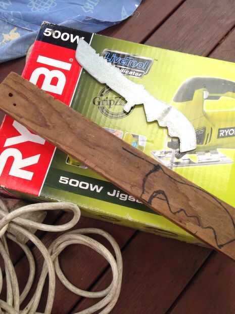 marqué el cuchillo en la madera, también hice unas cosa el cuchillo para que me vea mejor