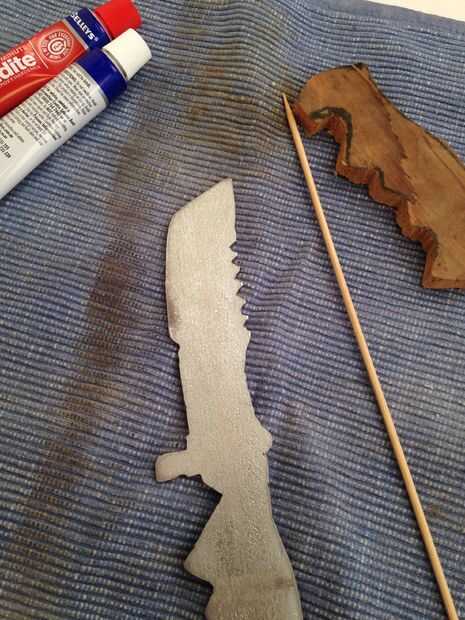Parte use dos epoxy en mango y luego hacer presión sobre el cuchillo y espere seco
