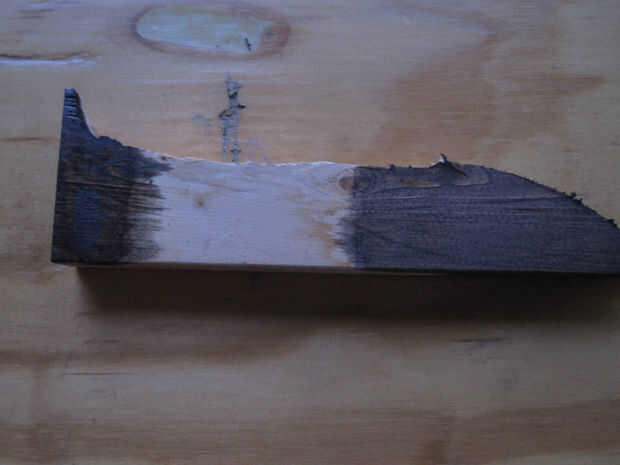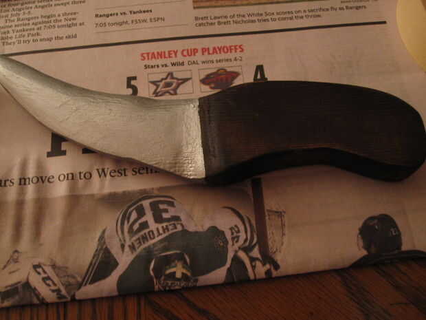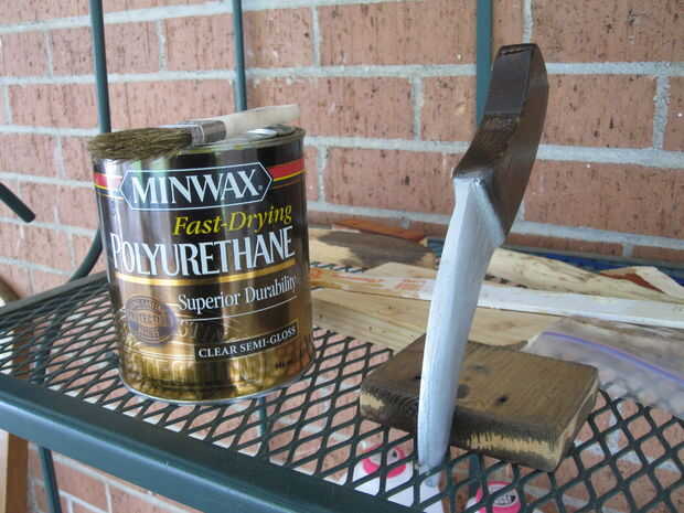 En primer lugar, he utilizado un producto llamado "acondicionador de la mancha" en el mango del cuchillo. Pino, porque es un madera blanda, puede ser un poco difícil a la mancha con un buen color. Esto es porque la madera tiene un grano suelto que va chupar la mancha muy fácilmente, que le da colores más oscuros de lo que usted quiera. Un acondicionador de mancha bloqueará algunos de los poros de la madera, haciendo que el tinte más ligero y más. Sin embargo, si usted ha utilizado una madera más bien granulosa, o una mancha diferente, puede que no necesite este acondicionador de la mancha (a pesar de lo que Minwax le dirá).