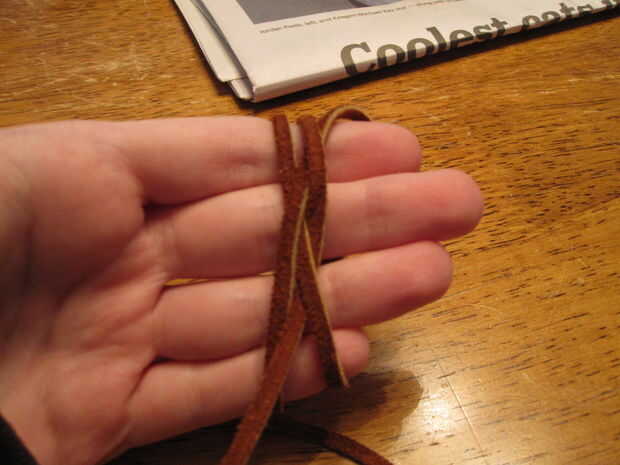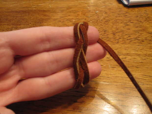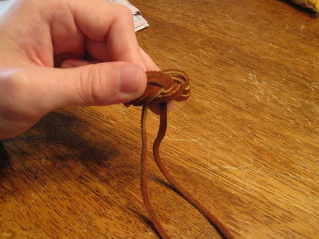 Único lo a tener en cuenta al atar con la cuerda de cuero es mantener el cordón de cuero sin trenzado. A diferencia de paracord, el cordón de cuero es plano y puede tener una tendencia a torcer como hacer. Evitar esto como puede, como usted tendrá que ir más adelante y trabajar los giros a través del nudo entero, o al menos ocultan en lugares que no visto.