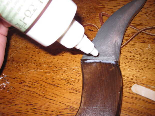 Sin embargo, si desea continuar el cuero enrollado para el cable hacia abajo la manija, lea el siguiente paso antes de pegar la cabeza de Turco en el lugar.
