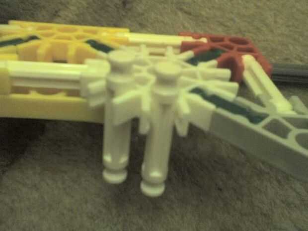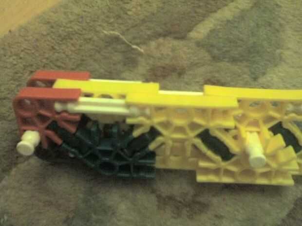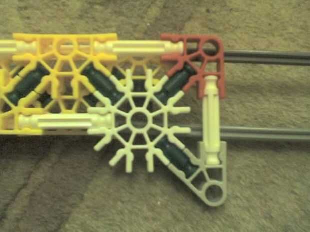 2. Fije una barra blanca en el mango y luego 2 conectores amarillos y 2 verdes cañas, repita en el otro lado.