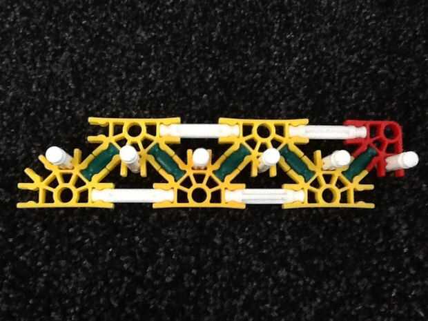 Una barra verde una barra blanca y un conector rojo y encájelas juntos. Y sujete el mango.