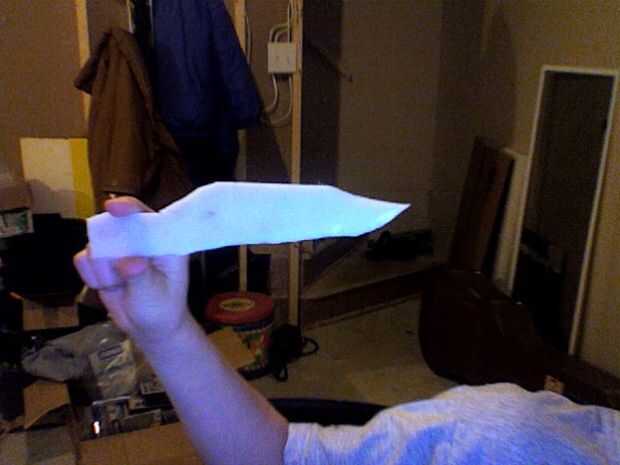 una espuma inofensiva cuchillo de lucha contra el juego, como lo uso para, una última mano de pie o arma de airsoft.Se necesita:1 SANDALIA flip-flop de espuma (tengo un par para un buck en Old Navy) Asegúrese de que esté lo suficientemente grande par