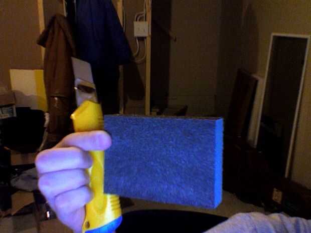 una espuma inofensiva cuchillo de lucha contra el juego, como lo uso para, una última mano de pie o arma de airsoft.Se necesita:1 SANDALIA flip-flop de espuma (tengo un par para un buck en Old Navy) Asegúrese de que esté lo suficientemente grande par