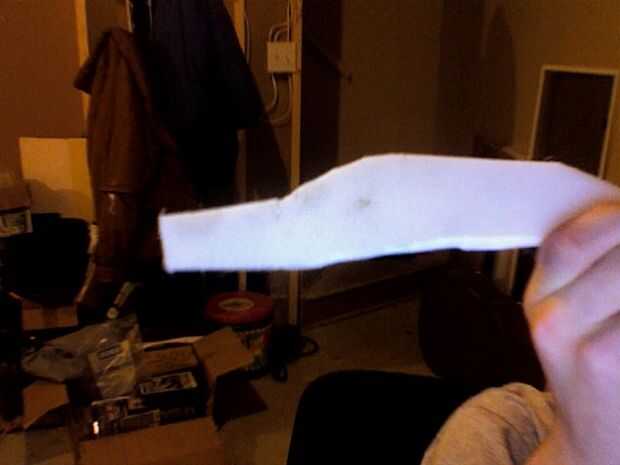una espuma inofensiva cuchillo de lucha contra el juego, como lo uso para, una última mano de pie o arma de airsoft.Se necesita:1 SANDALIA flip-flop de espuma (tengo un par para un buck en Old Navy) Asegúrese de que esté lo suficientemente grande par