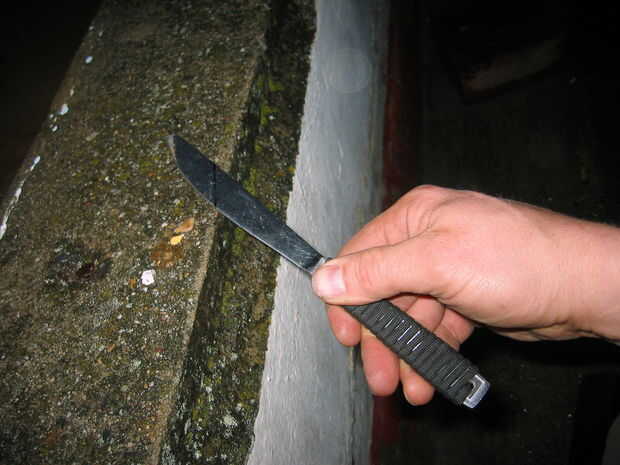 Me froté la cuchilla en el borde de una acera hasta que fue cortado a través de lo suficiente para romper en la longitud que quería.